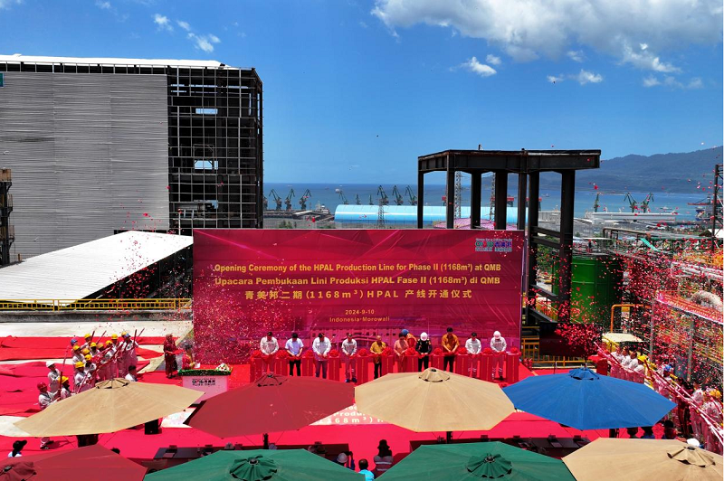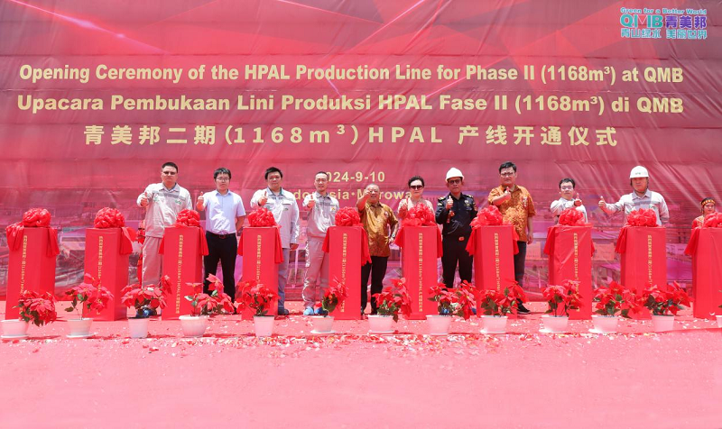 2024年9月10日上午,格林美印尼青美邦镍资源二期湿法冶炼(1,168m³反应器)(HPAL)产线开通仪式在青美邦园区隆重举行。青美邦股东代表、永青集团副总裁章凡先生,IMIP运营副总监苏德森先生,印尼政府莫罗瓦利海关代表Junaedi先生,格林美集团董事长许开华教授,格林美集团联合实控人、董事王敏女士,青美邦股东代表韩国EcoPro本部长李升焕先生、日本阪和专务KURATA先生以及IMIP园区企业代表、青美邦建设合作伙伴代表等共300余人出席本次仪式。