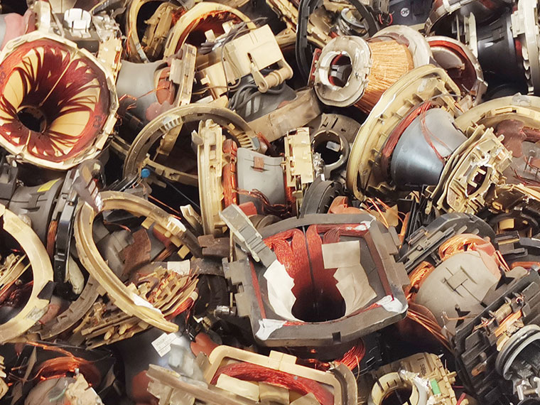 电子废弃物中的废铜主要来自于电子废弃物中空调、CRT产品的含铜零部件,主要品类包括黄铜、白铜、红铜。