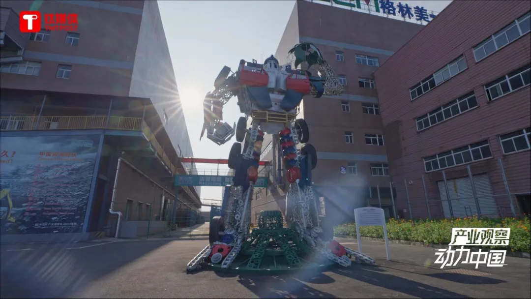 武汉,格林美厂区内部,由报废汽车零件建成的机器人装置