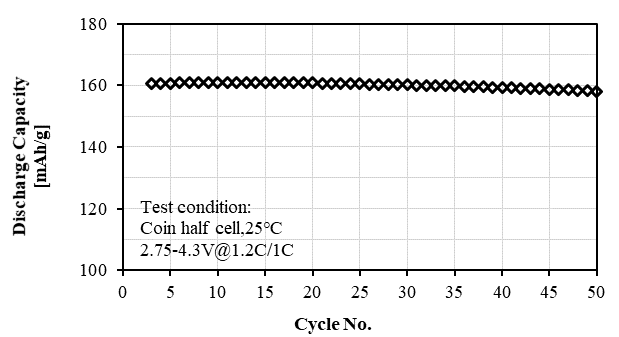 L-5050型镍钴锰酸锂(Ni/Co/Mn=51.5/20/28.5,4.20V,用于18650、方形电池For 18650, square battery)