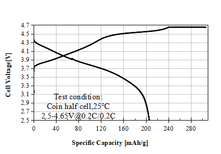LRM35M产品应用:用于方型或软包电池,4.65V下0.2C放电258.9mAh/g,可用于动力汽车或电动工具