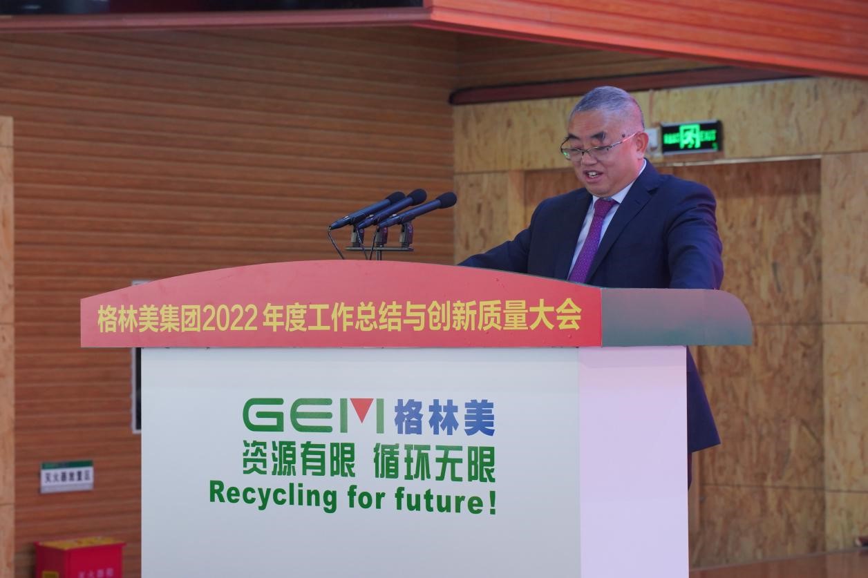 图6 格林美集团党委书记、董事长许开华教授发表2022年度总结与新年献词